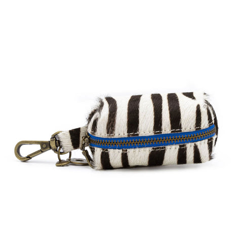 Kacke aufsammeln ist kein Glamour-Job – aber der Poopbag Holder Dandy macht daraus eine stilvolle Angelegenheit. Handgefertigt im eleganten Zebra-Style mit weichem Fell-Look, einem kräftigen blauen Reißverschluss und antik-goldenem Karabiner. Kompakt, robust und superpraktisch – damit bist du beim Gassigehen immer vorbereitet und siehst dabei aus, als würdest du gerade über den Catwalk laufen.