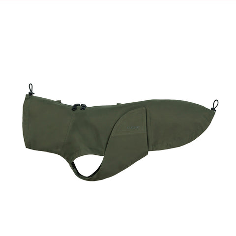 Dieser Hundemantel im Regular-Schnitt (es gibt auch Modelle speziell für Dackel oder Frenchie) kommt in 12 verschiedenen Größen für Hunde von 1 kg bis zu 38 kg. Ein Kordelstopper am Rücken sorgt für Feinjustierung der Länge – so ist die perfekte Passform für jede Fellnase garantiert.