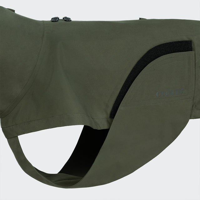 Der lange Reißverschluss (wasserdicht, na klar!) macht das Handling mit Geschirr oder Halsband super easy. Und dank Gummizug und Flächenklett bleibt alles da, wo’s hingehört – egal ob Sprint oder entspannte Schnüffelrunde.