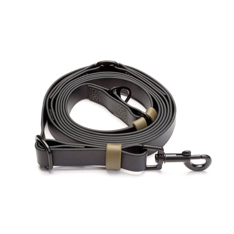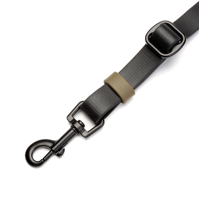 Design trifft Funktion ... in der wohl schönsten BioThane-Variante ever! Du nimmst die Leine in die Hand – der erste Eindruck: clean, soft und mega wertig. Das Material fühlt sich fast wie Leder an, ist aber 100% vegan und viel tougher. Die Farbkombi aus dunklem Olivgrün und Schwarz ist schlicht, aber alles andere als langweilig. Die mattschwarzen Metallteile wirken edel und solide – ready für Wald, Wiese und Asphalt.
