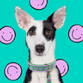 Willkommen in der bunten Welt von Dog with a Mission, wo das Hundehalsband Smiley zu eurem Gute-Laune-Garanten wird! Die Farben Lila und Grün kontrastieren cool mit jedem Fell und sorgen dafür, dass dein Liebling in Sachen Trendgespür immer einen Hals breit Vorsprung hat. Holt euch Farbe und Fun in euren Alltag!