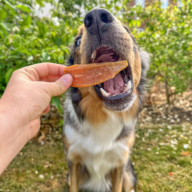 Süßkartoffel ist ein echtes Superfood für Hunde! Sie steckt voller Carotinoide, Vitamin A, C und E, sowie Ballaststoffe und Antioxidantien. Das stärkt das Immunsystem, unterstützt die Augengesundheit und sorgt für gesunde Verdauung. Die enthaltenen guten Bakterien fördern die Magenbalance, während der natürliche Zucker langsam ins Blut abgegeben wird – für gleichmäßige Energie ohne Zuckercrash. Ideal für empfindliche Hundemägen – und richtig lecker obendrauf!