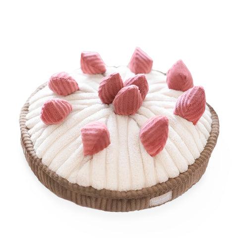 Die leuchtenden Beeren auf dem Törtchen sind nicht nur cute, sondern auch clever: Unter ihnen verstecken sich Pockets für Leckerlis – insgesamt acht davon! So wird jede Schnüffelrunde zum geschmackvollen Denkspaß. Und damit's richtig zur Sache geht, sorgt der kräftige Quietscher im Inneren für akustische Action.
