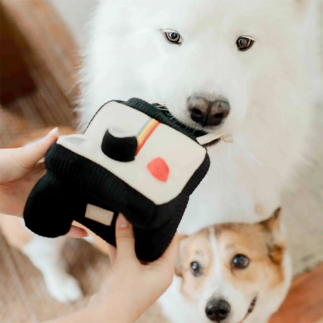 Sie liefert statt süßer Bilder leckere Snacks! Die INSTANT CAMERA von Lambwolf ist das perfekte Schnüffelspielzeug für kleine Nasendetektive. Mit knisterndem „Fotopapier“, Quietscher im Auslöser und verstecktem Leckerli-Fach ist hier Spaß auf Knopfdruck garantiert – ganz ohne Akku.