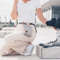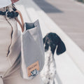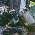 Der Beton-Ton wirkt modern und unaufgeregt. Der Stoff aus 100% Acryl ist robust und kommt mit Features, die euren Alltag leichter machen. Ein Magnetverschluss sorgt dafür, dass du Leckerlis sofort parat hast, ohne viel Gefummel. Im unteren Fach (Reißverschluss am Taschenboden) ist Platz für Kotbeutel, die du vorne durch den ledergefassten Schlitz einzeln ziehst – sauber, schnell, zero Stress.