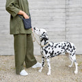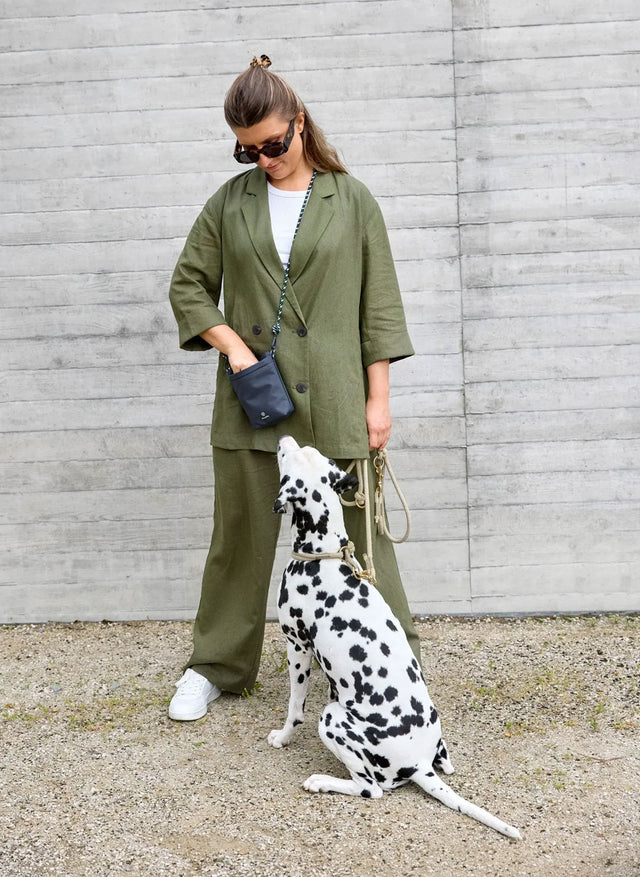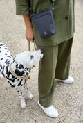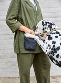 Der Leckerlibeutel Karl in Dunkelblau vereint Stilbewusstsein mit Funktion – ganz ohne laut zu sein. Die satte Farbe mit matter Oberfläche bringt Ruhe und Eleganz ins Gassi-Game. Doch dann kommt der Twist: Der geflochtene Schulterriemen kombiniert dunkles Tannengrün mit rosa-lila Akzenten – ein mutiger, aber harmonischer Look.