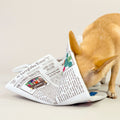 Diese Zeitung wird Artikel für Artikel aus einander genommen! Das Schnüffelspielzeug Newspaper die DIE Neuigkeit für deinen Vierbeiner – und steckt voller Leckerli-Pockets. Ein cleveres interaktives Toy für neugierige Schnüffelnasen, das Köpfchen fordert, Spaß bringt und für mentale Auslastung sorgt.