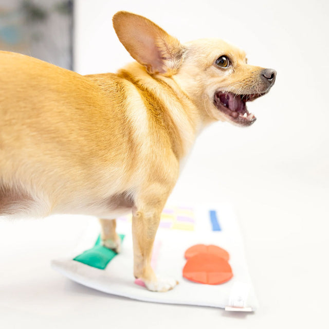 #MENTALE AUSLASTUNG: Nasenarbeit fordert das Gehirn des Hundes wie uns Menschen ein gutes Sudoku. Das macht müde – und glücklich! Als Ergänzung zu körperlicher Auslastung, an Schlechtwettertagen oder im Homeoffice sind Schnüffelspiele deshalb ideal. Im Englischen spricht man bei solchen Toys auch von „enrichment“, also einer „Bereicherung“ für den Vierbeiner über das reine Spiel hinaus.